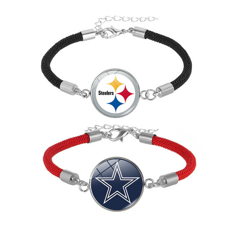 Wholesale Popular NFL Football Teams Time Gemstone Weaving Bracelet Custom Logo Adjustable Woven Bracelet Men Women Bangle Gift