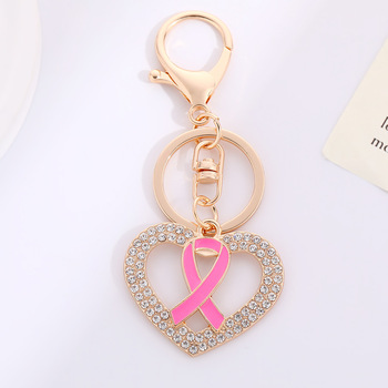 Portachiavi creativo con nastro rosa al seno consapevolezza del cancro al seno amore cuore con strass in cristallo