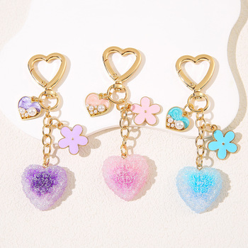 Creativo dulce 3D corazón cristal Piedra cuenta cadena bolsa colgante cadena decorativa moda chicas mochila llavero teléfono caso encantos