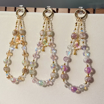 Lujo Colorfu Crystal Bead Teléfono móvil Cadena Llavero Correa de muñeca Cordón Mariposa Colgante Teléfono móvil Cuerda colgante