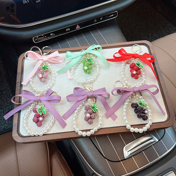 Venta al por mayor creativo arco uva perla llavero moda nuevo estilo fruta llavero coche bolsa Decoración
