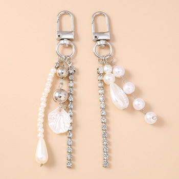 Nueva moda Cadena de diamantes de imitación llavero borla perla Shell llavero bolsa colgante