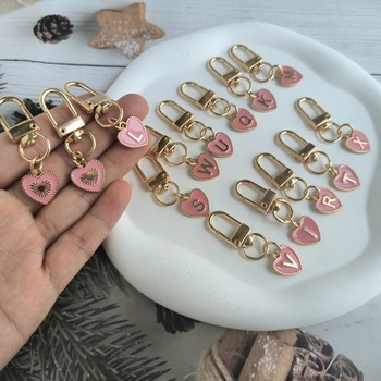 Lindo esmalte rosa en forma de corazón carta llavero encantador de doble cara Rosa corazón llaveros bolsa encantos auricular caso colgante joyería