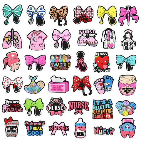 Atacado Ob-gyn Doctor Nurse Shoe Encantos Acessórios Sapato Cartoon Bow Estetoscópio Enfermeira Uniforme Cartoon Charms