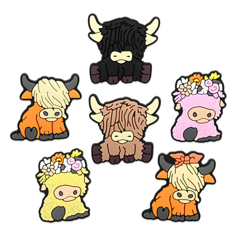 Atacado Bonito Highland Vacas Sapato Charme Soft PVC Designer Tampo Acessórios Pulseira Encantos Highland Gado Sapato Charme para Sapato