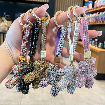 Đầy Đủ Kim Cương Bóng Con Chó Xe Keychain Mặt Dây Chuyền Cá Nhân Long Lanh Pha Lê Rhinestone Kim Loại Móc Chìa Khóa Túi Treo Quà Tặng Keychain